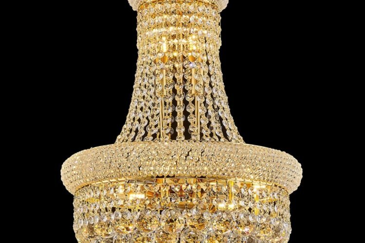 The Homeooze 10‑Light Empire Crystal Chandelier combines a classic empire-style silhouette with sparkling crystals and a gold-tone finish. Its elegant design makes it a focal point, elevating the aesthetic of any room while providing functional illumination.